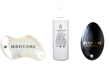 HANNONモイスチャーローションを塗布し、頭、首、背中、デコルテまでハンドマッサージ |