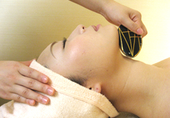 ハンド、美肌石、ハーブボールでゆっくり深く頭からデコルテまでほぐします。